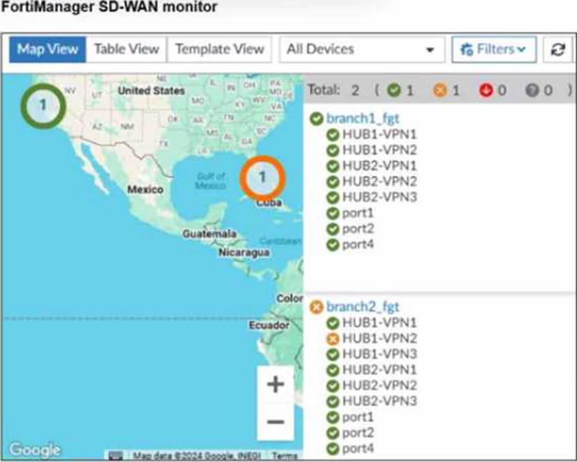 FortiManager SD-WAN Monitoring Guide, “Branch Device Health and SLA Status Visualization”