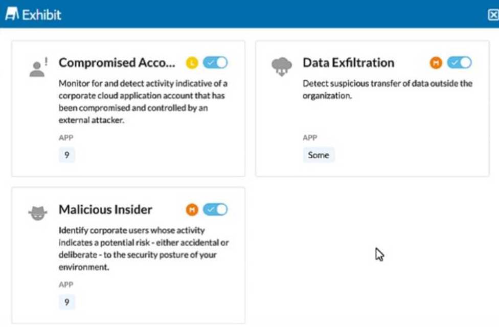 Reference: The exhibit showing rules related to compromised accounts, data exfiltration, and malicious insiders aligns with the capabilities provided by Behavior Analytics.