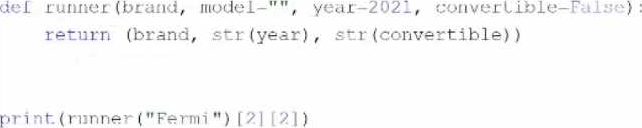 However, if the code had handled the exception, or if the function had used default values for the missing parameters, the expected output of the code would be (‘Fermi ‘, ‘2021’, ‘False’). This is because the function returns a tuple with the values of the parameters, and the print function displays the tuple to the screen. Therefore, the correct answer is D. (‘Fermi ‘, ‘2021’, ‘False’).