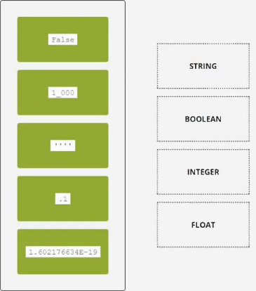Drag and drop the literals to match their data type names.