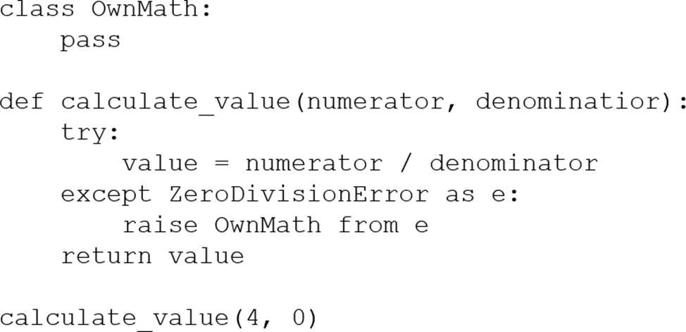 - C . It is a situation where an exception is raised intentionally during other exception handling C the __cause__ attribute is filled with the exception details.