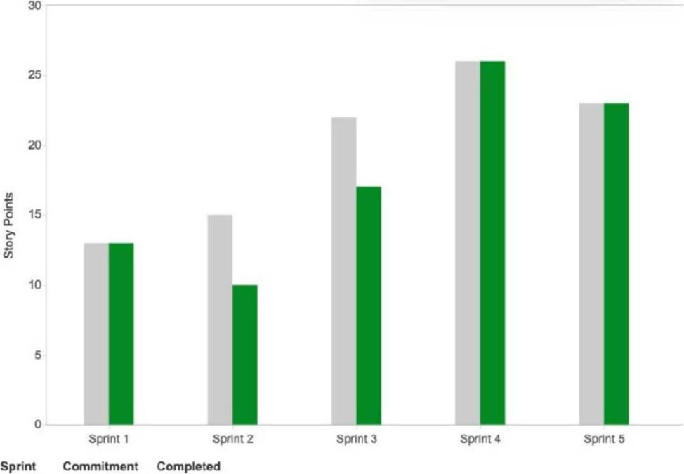 A project manager is monitoring team performance by comparing committed versus completed work.