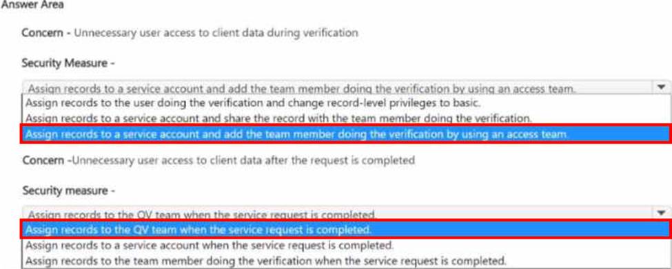 Which security changes should you make? To answer, select the appropriate options in the answer area. NOTE: Each correct selection is worth one point.