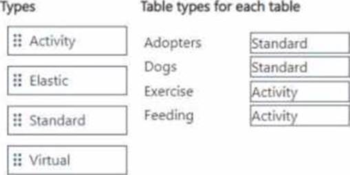 Which table type should you define for each requirement? To answer, move the appropriate table types to the correct tables. You may use each table type once, more than once, or not at all. You may need to move the split bar between panes or scroll to view content. NOTE: Each correct selection is worth one point.