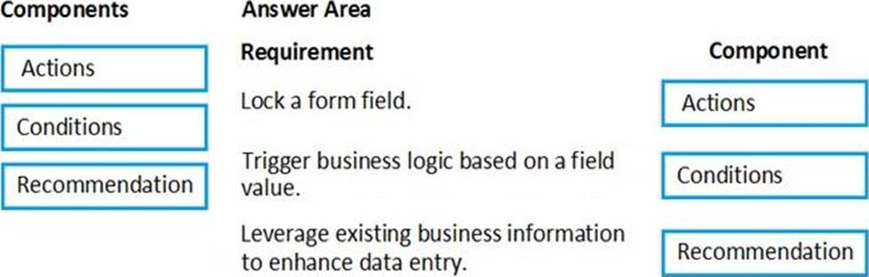 Which components should you use? To answer, drag the appropriate components to the correct requirements. Each component may be used once, more than once, or not at all. You may need to drag the split bar between panes or scroll to view content. NOTE: Each correct selection is worth one point.