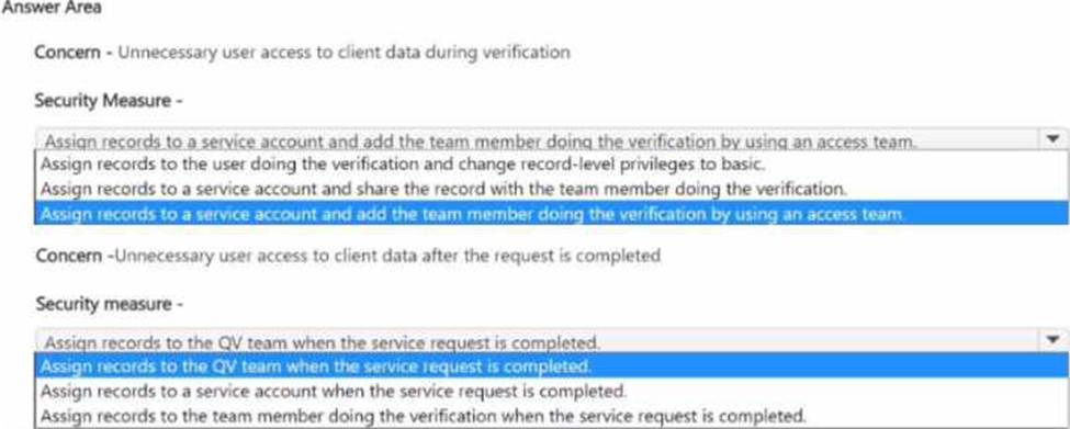 Which security changes should you make? To answer, select the appropriate options in the answer area. NOTE: Each correct selection is worth one point.