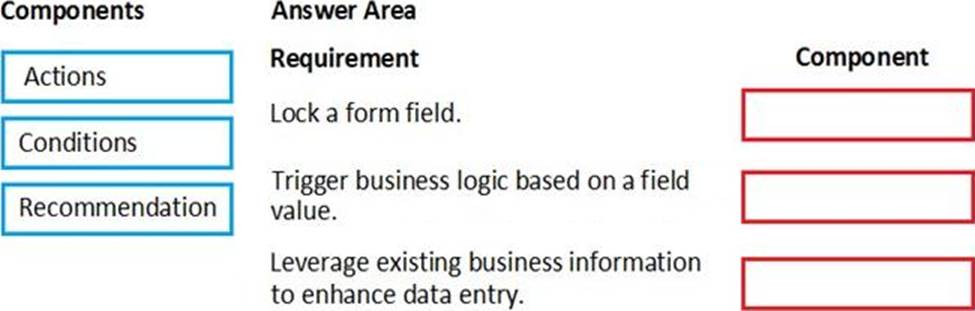 Which components should you use? To answer, drag the appropriate components to the correct requirements. Each component may be used once, more than once, or not at all. You may need to drag the split bar between panes or scroll to view content. NOTE: Each correct selection is worth one point.