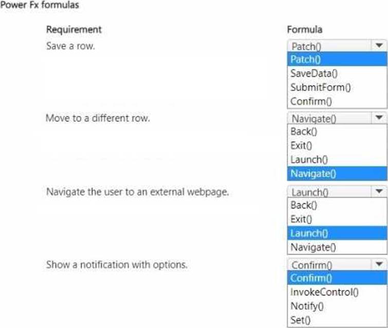 Which formulas should you identify? To answer, select the appropriate options in the answer area. NOTE: Each correct selection is worth one point.