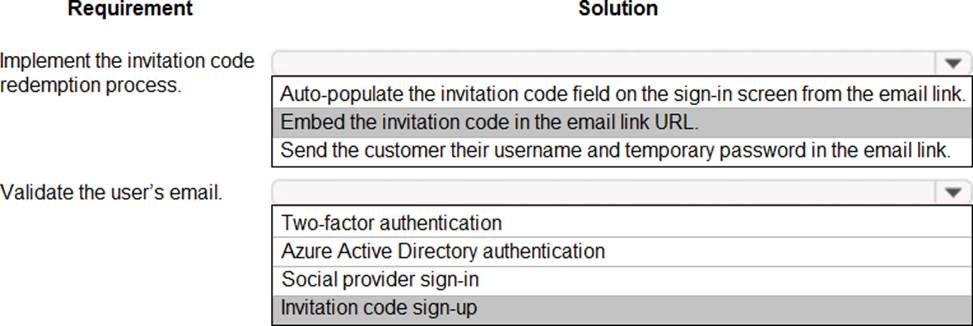 How should you configure the app? To answer, select the appropriate options in the answer area. NOTE: Each correct selection is worth one point