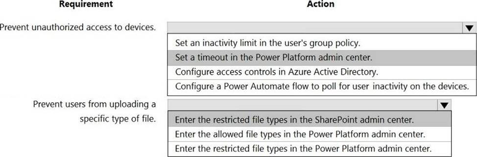 Box 1: Set a timeout in the Power Platform admin center.