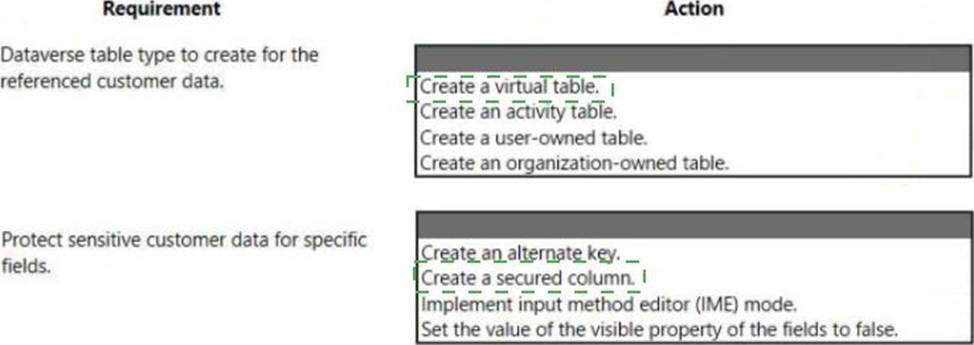 A company has a sales application that is supported by an Azure SQL database. You are developing a Power Apps app for use by customer service agents.
