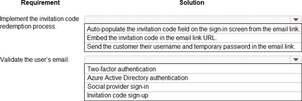 Which solutions should you use? To answer, select the appropriate options in the answer area. NOTE: Each correct selection is worth one point.