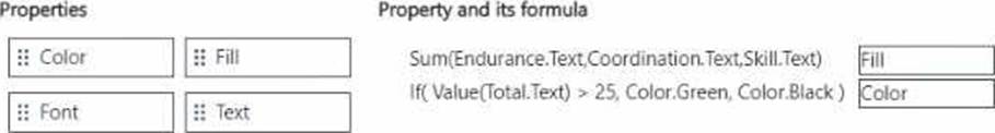 Which property should you select for the formula? To answer, move the appropriate property to the correct formula. You may use each property once, more than once, or not at all. You may need to move the split bar between panes or scroll to view content. NOTE: Each correct selection is worth one point.