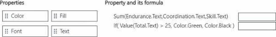 Which property should you select for the formula? To answer, move the appropriate property to the correct formula. You may use each property once, more than once, or not at all. You may need to move the split bar between panes or scroll to view content. NOTE: Each correct selection is worth one point.