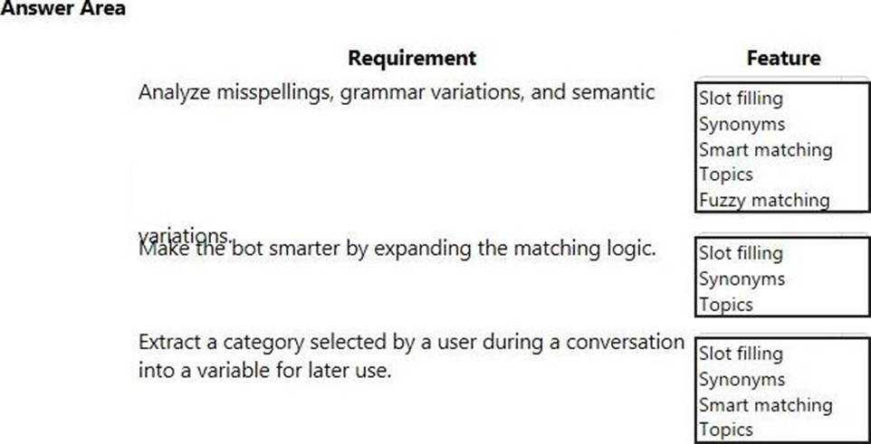 Which features should you use? To answer, select the appropriate options in the answer area. NOTE: Each correct selection is worth one point.