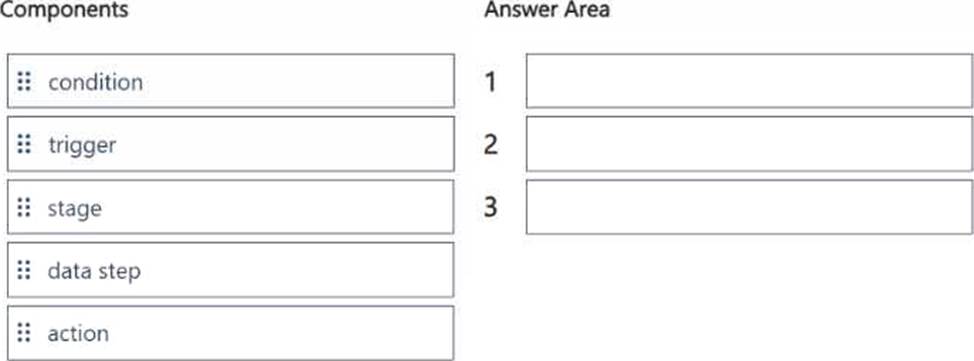 Which three components should you add to the flow in sequence? To answer, move the appropriate components from the list of components to the answer area and arrange them in the correct order.