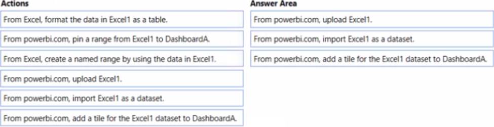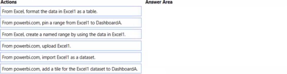 You need to ensure that users who can access Dashboard A can ask Questions based on the contents of Excel 1 and pm visuals based on their queries to Dashboard A. The solution must minimize development time.