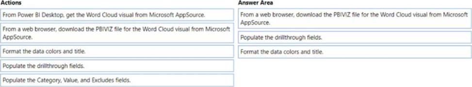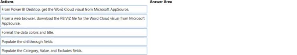 You need to add the Word Cloud visual shown in the following exhibit to the report.