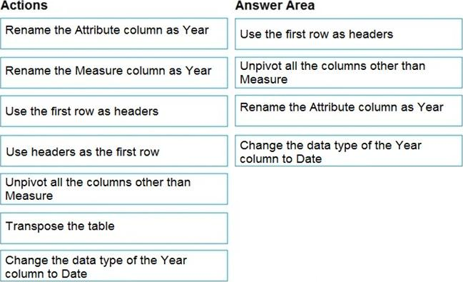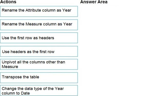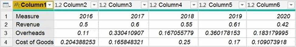You connect to the data stored in a Microsoft Excel spreadsheet by using Power Query Editor as shown in the following exhibit.