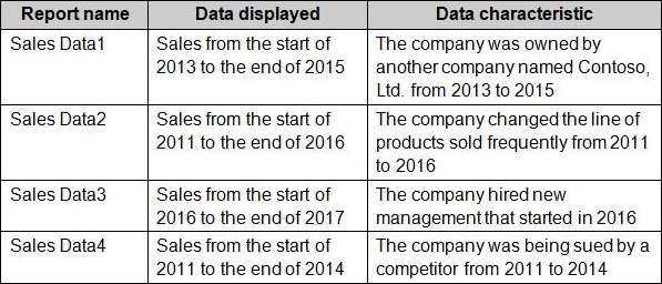 You have an app workspace that contains a dashboard and four reports. All the reports are generated from a single dataset that contains sales data for your company.