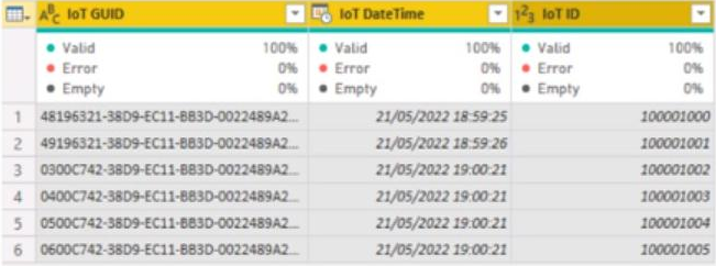 The IoT GUID and IoT ID columns are unique to each row in query.