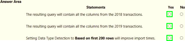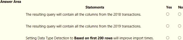 You receive the following email message: "Hi. I’ve put 24 files of monthly transaction data onto the shared drive. File Transactions201901.csv through Transactions201912.csv have the latest set of columns, but files Transactions201801.csv to Transactions201812.csv have an older layout without the extra fields needed for analysis. Each file contains 10 to 50 transactions."