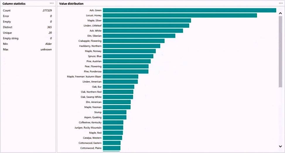You have a table that contains a column named column1. Column statistics and Value distribution for column1 are shown in the following exhibit.