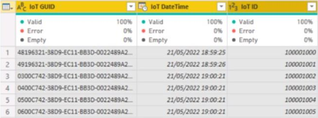 The IoT GUID and IoT ID columns are unique to each row in query.