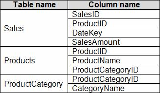 You are creating a Microsoft Power BI data model that has the tables shown in the following table.