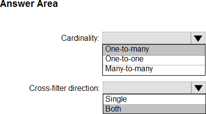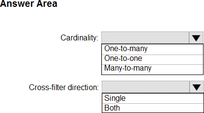 How should you configure the relationships from Products to ProductCategory? To answer, select the appropriate options in the answer area. NOTE: Each correct selection is worth one point.
