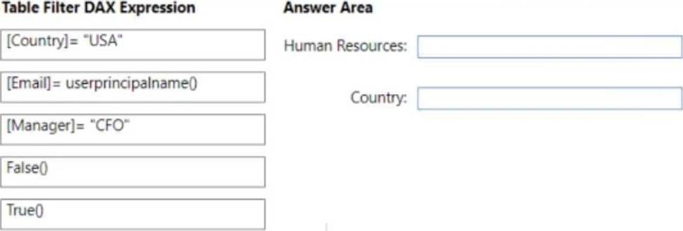 How should you complete the DAX expressions to meet the requirements? To answer, drag the appropriate expressions to the correct targets. Each expression may be used once, more than once, or not at all. You may need to drag the split bar between panes or scroll to view content. NOTE: Each correct selection is worth one point.