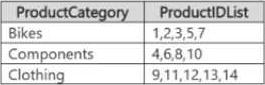 How should you configure the ProductlDList column? To answer, select the appropriate options in the answer area. NOTE: Each correct selection is worth one point.