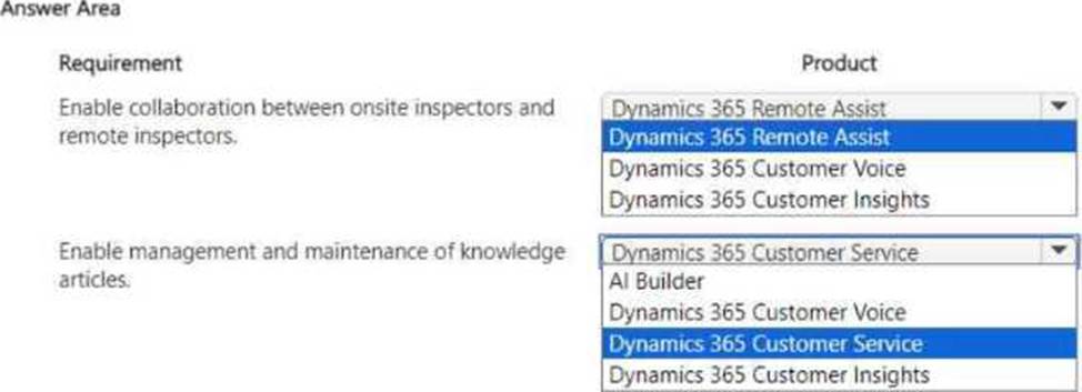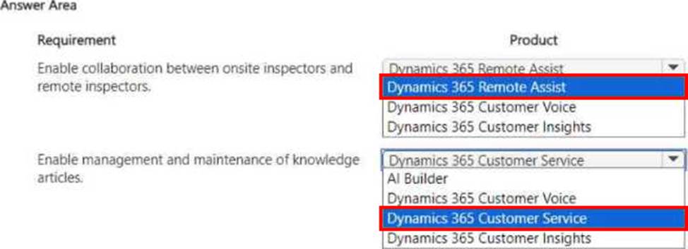 Which products should you recommend? To answer, select the appropriate options in the answer area. NOTE: Each correct selection is worth one point