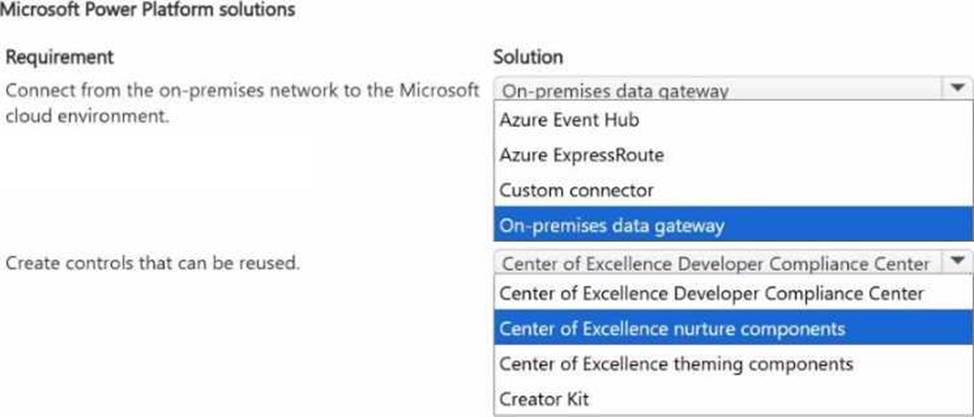 What should you use? To answer, select the appropriate options in the answer area. NOTE: Each correct selection is worth one point.