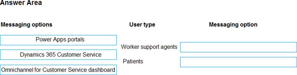 What should you recommend? To answer, drag the appropriate messaging options to the correct user types. Each messaging option may be used once, more than once, or not at all. You may need to drag the split bar between panes or scroll to view content. NOTE: Each correct selection is worth one point.