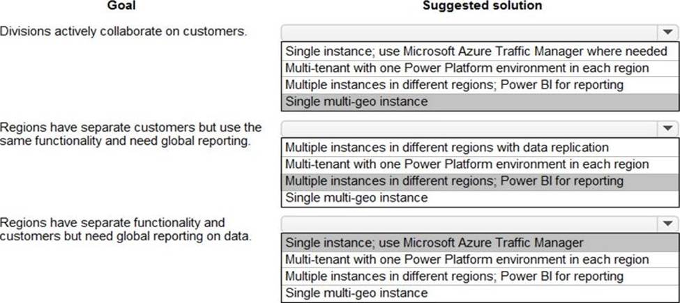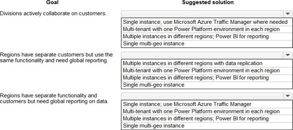 A multinational organization uses a single Microsoft Power Platform environment. The instance hosts multiple customizations for different users m different regions.