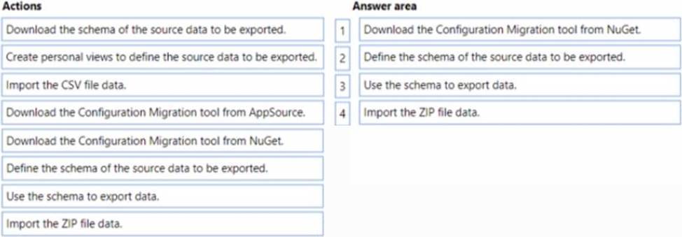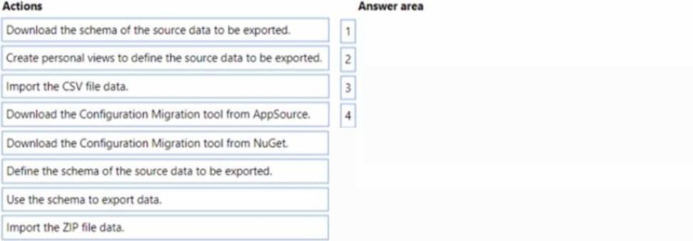 Which four actions should you recommend be performed in sequence? To answer, move the appropriate actions from the list of actions to the answer area and arrange them in the correct order.