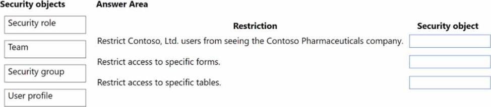 • Restrict Contoso, Ltd. users from seeing the Contoso Pharmaceuticals company.