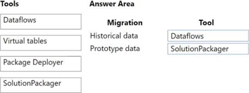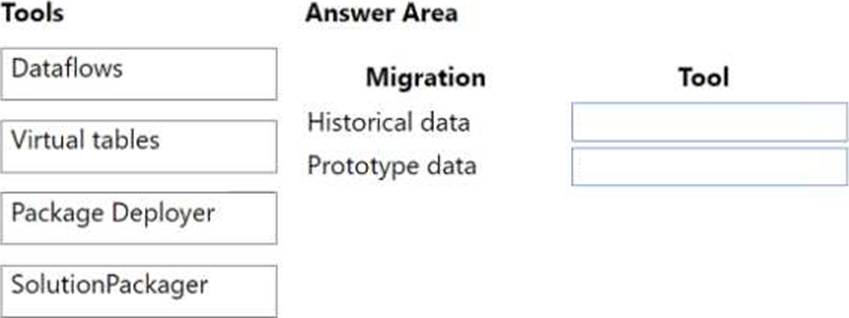 An organization plans to replace large, legacy systems with apps in Microsoft Power Platform. The technical staff consolidated the legacy data into a Microsoft SQL Server database and provisioned a Microsoft Power Platform environment for prototyping new processes. The business decision makers approved the SQL data and the prototype data that must be migrated into production.