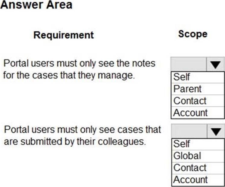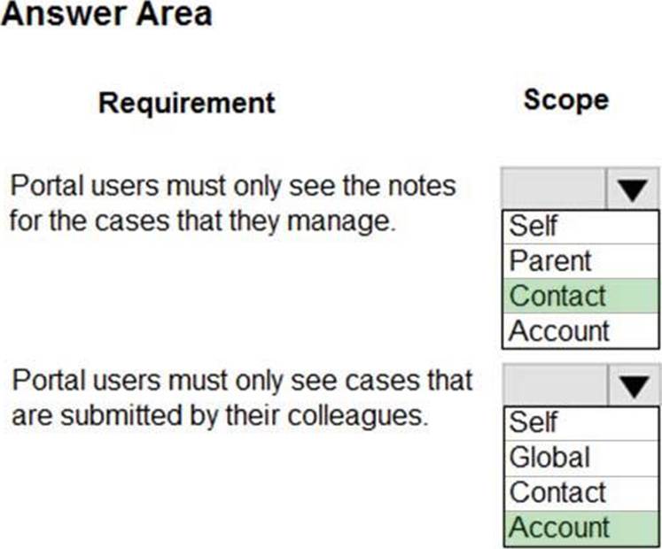 A company plans to create a Power Apps portal to manage support cases for customers. The company has an account hierarchy for customers. The hierarchy supports accounts, cases, and contacts where both contacts and cases belong to their relevant account.