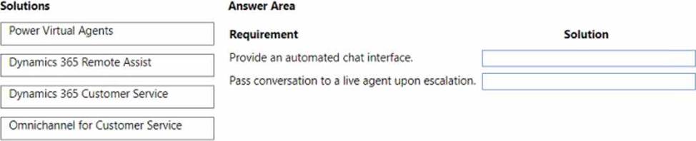 Which solutions should you recommend? To answer, drag the appropriate solutions to the correct requirements. Each solution may be used once, more than once, or not at all. You may need to drag the split bar between panes or scroll to view content. NOTE: Each correct selection is worth one point.