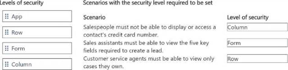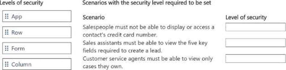 Which levels of security should you set? To answer, move the appropriate levels of security to the correct scenarios. You may use each level once, more than once, or not at all. You may need to move the split bar between panes or scroll to view content. NOTE: Each correct selection is worth one point.