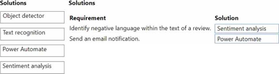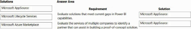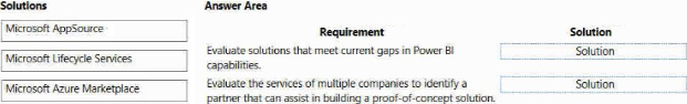 What should you recommend? To answer, drag the appropriate solutions to the correct requirement. Each solution may be used once, more than once, or not at all. You may need to drag the split bar between panes or scroll to view content. NOTE: Each correct selection is worth one point.