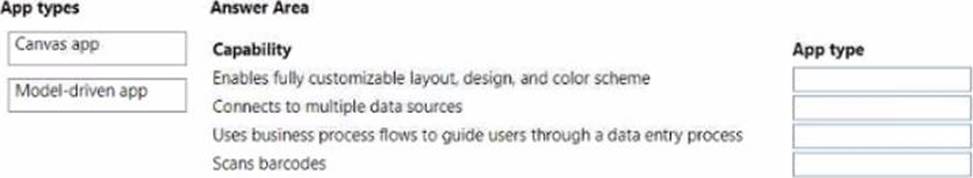 To answer, drag the appropriate app type from the column on the left to its capability on the right. Each app type may be used once, more than once, or not at all NOTE Each correct match is worth one point.