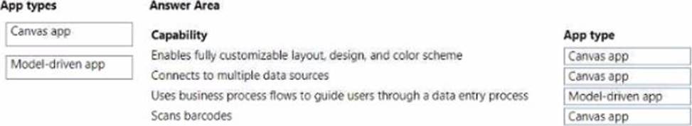 Match each type of Power Apps app to its capability.