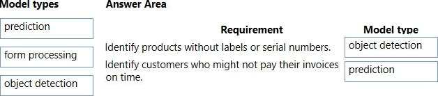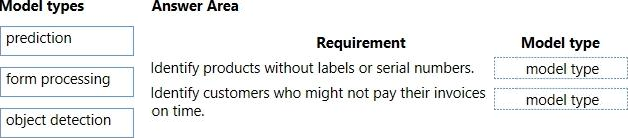 Which model types should you use? To answer, drag the appropriate model types to the correct requirements. Each model type may be used once, more than once, or not at all. You may need to drag the split bar between panes or scroll to view content. NOTE: Each correct selection is worth one point.