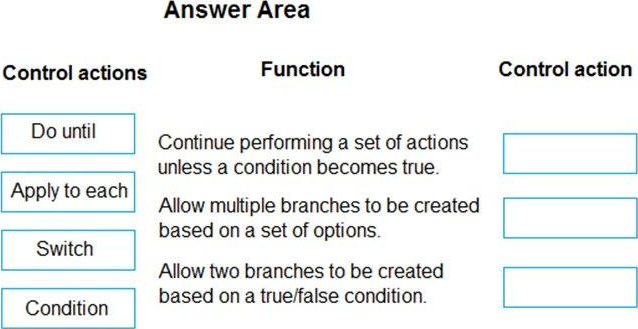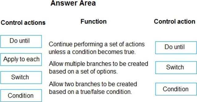 Which control action should you use? To answer, drag the appropriate control actions to the correct functions. Each control action may be used once, more than once, or not at all. You may need to drag the split bar between panes or scroll to view content. NOTE: Each correct selection is worth one point.