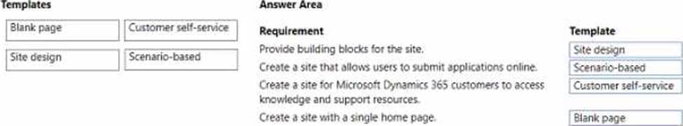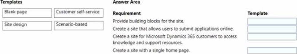 Which types of templates should you use? To answer, drag the appropriate templates to the correct requirements. Each template may be used once, more than once, or not at an. You may need to drag the split bar between panes or scroll to view content. NOTE: Each correct selection is north one point.