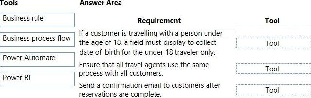 What should you recommend? To answer, drag the appropriate tools to the correct requirements. Each tool may be used once, more than once, or not at all. You may need to drag the split bar between panes or scroll to view content. NOTE: Each correct selection is worth one point.