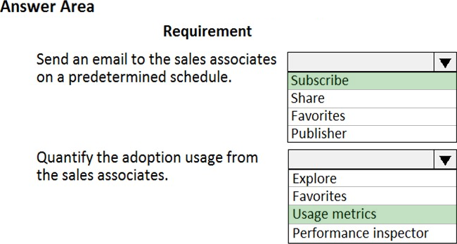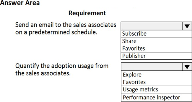 You are a regional sales manager for a large internet retailer. You create a series of Power BI reports and dashboards to help sales associates be more productive and increase sales.